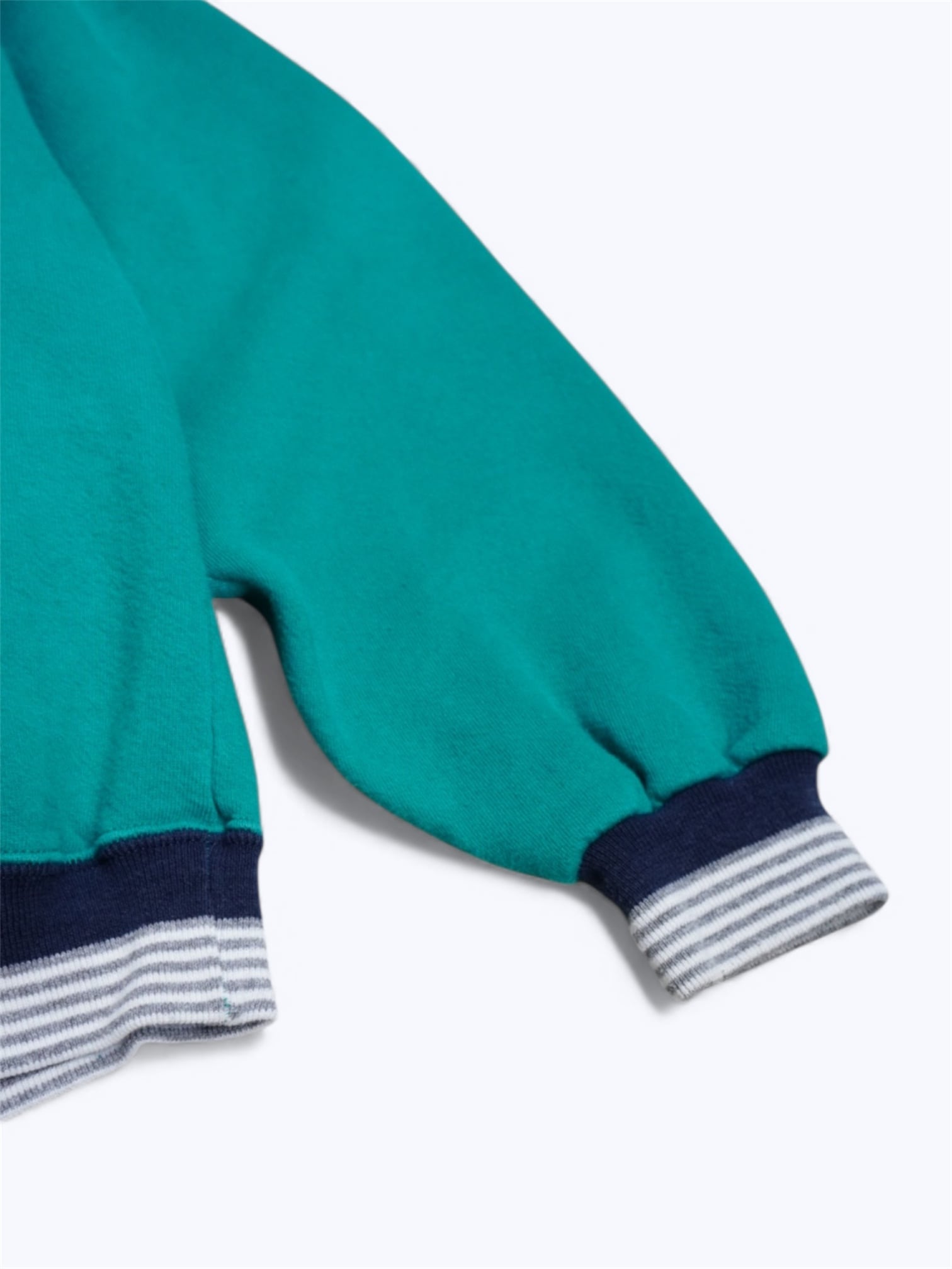 首元、袖口、裾に広がるリブライン。