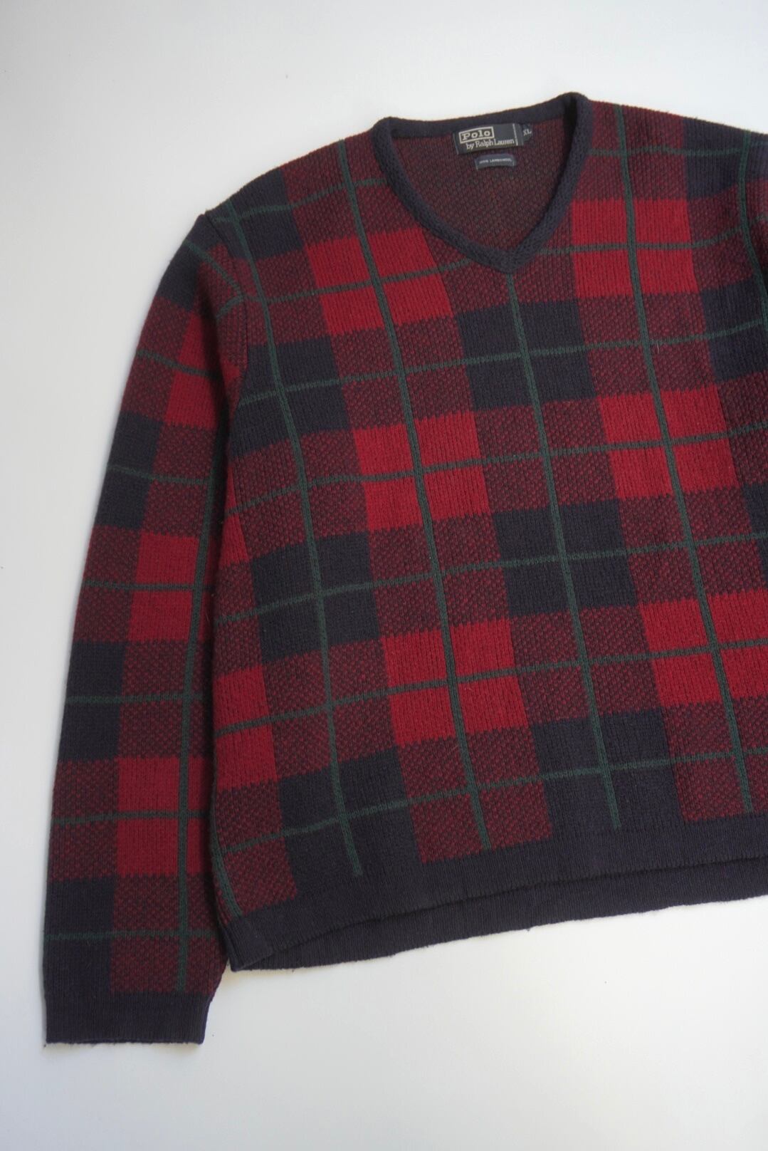 90's Polo by RalphLauren Plaid Pattern Lams Wool Knit.